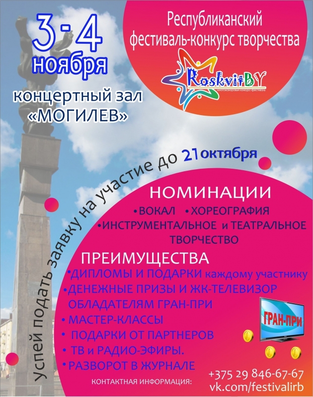 Приглашаем принять участие в многожанровом фестивале творчества «RoskvitBY», который состоится 3-4 ноября город Могилеве.