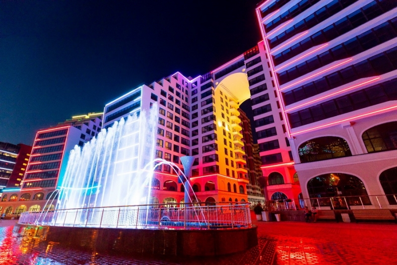 И, конечно же, здесь же расположен удивительный фонтан «Дана Танец» – новая достопримечательность Минска и любимое место вечерних прогулок. Яркое лазерно-светового шоу в струях воды, танцующей под великолепную музыку, – это незабываемое зрелище. И прекрасный релакс перед сном для тех, кто живет в этом комплексе!