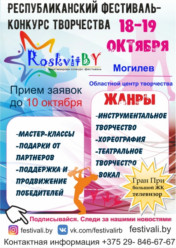 Подробности и контакты смотрите на сайте Фестивали и конкурсы творчества Республики www.festivali.by