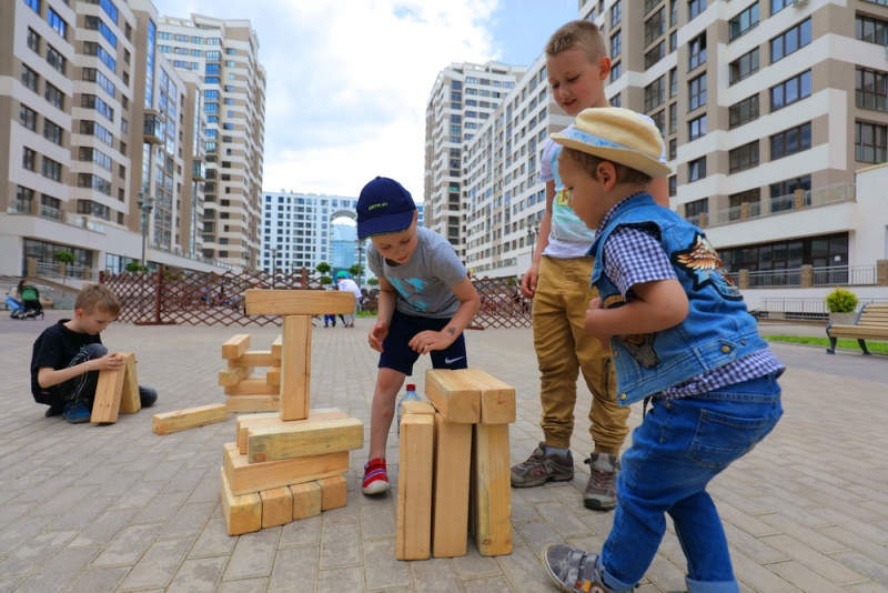 Во дворах отлично оборудованные детские площадки – с горками, лесенками, специальным мягким покрытием
