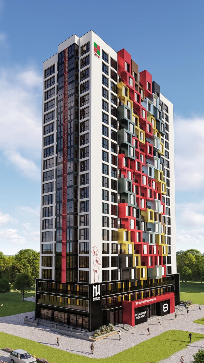 Дом «Москва» – это 21 этаж и 250 квартир различной площади, от 27,9 до 74,9 кв. метров. Все - свободной планировки, организовать пространство можно как угодно! На первом этаже - 10 квартир с отдельными входами непосредственно с улицы. Над входами – прозрачный козырек, а также стеклянная витражная дверь - полное ощущение частного дома! Часть квартир второго этажа - с собственными террасами, а на третьем и четвертом этажа - с французскими балконами. Застекленные лоджии или балконы – в квартирах с пятого этажа и выше. Большие окна с использованием триплексного стекла для безопасности и детскими замками наполнят все помещения этого дома светом и воздухом.