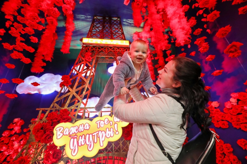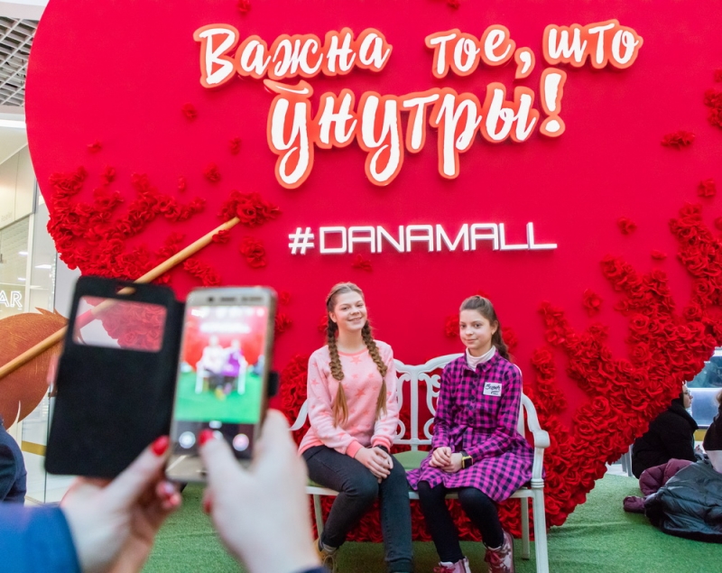 Особая заслуга организаторов – праздничные фотозоны. Их было пять – на всех этажах комплекса. Главная – прямо в атриуме, с огромным сердечком и трогательной надписью, к слову, по-белорусски – «Галоўнае тое, што ўнутры!». Выстраивались очереди, чтобы сфотографироваться! И не только из влюбленных парочек – девчонки снимали друг друга и не скрывали, как же здорово они выходят на фотографиях. Еще бы! Весна и праздник влюбленности украшают девушек!