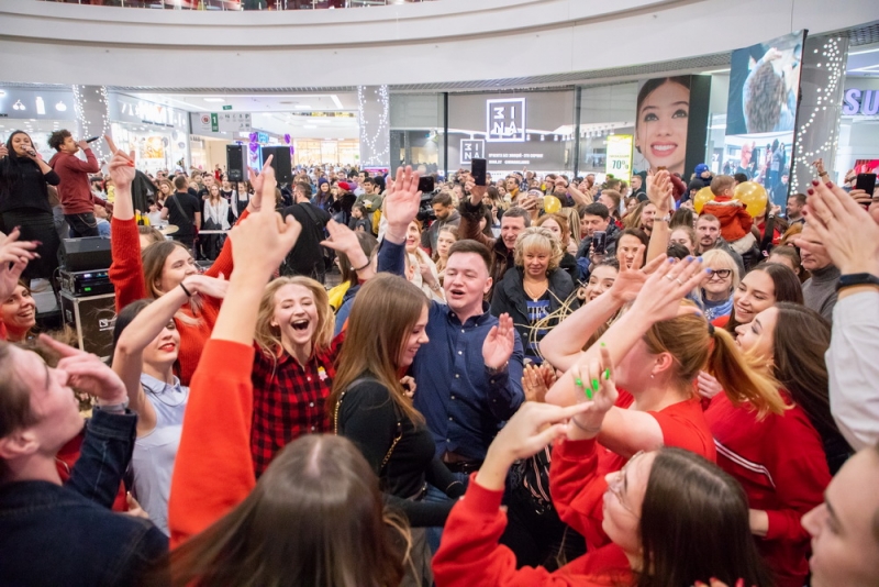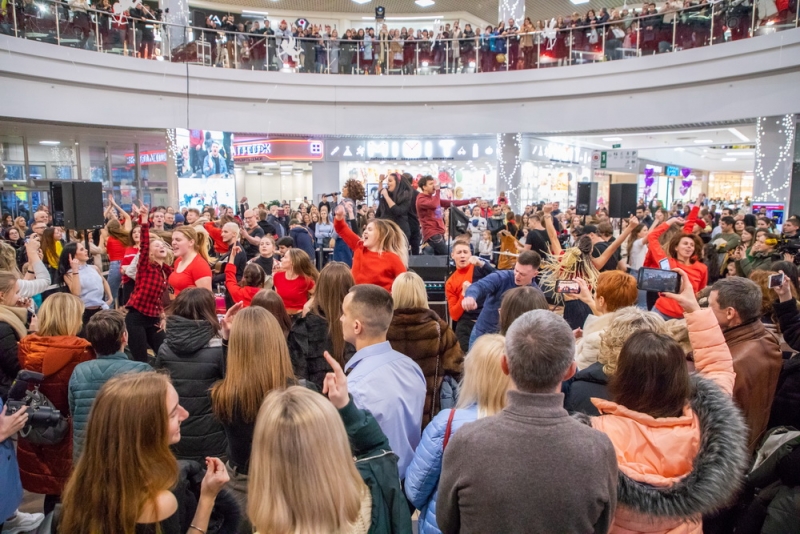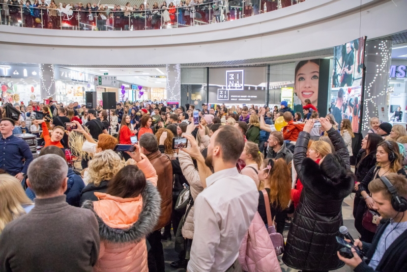 18.00. Ближе к шести людей в торговом центре становится все больше. Именно к этому времени организаторы пригласили посетителей, обещая, что праздник не останется незамеченным. Все как будто чего-то ждут, но случилось то, что ожидать никак было невозможно!