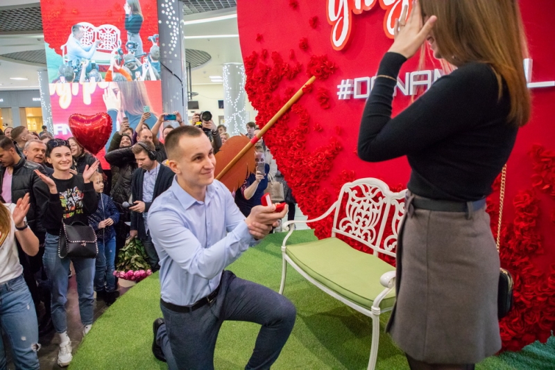 И кульминация – в фотозоне с сердечком в главном атриуме парень делает предложение выйти замуж ничего не подозревающей девушке. И ее скромное «Да!» тонет в громе аплодисментов всех присутствующих.