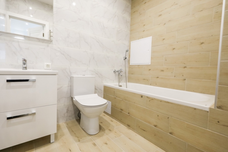 В санузлах предлагается несколько вариантов цветовой гаммы и материалов