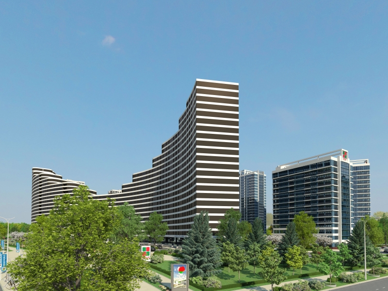 У дома «Микеланджело» переменная этажность – от 9 до 13 этажей. Это первый слева дом, если смотреть со стороны Национальной библиотеки, в ансамбле зданий с огромной аркой. Особенность дома — открытые террасы с изумительными видами!