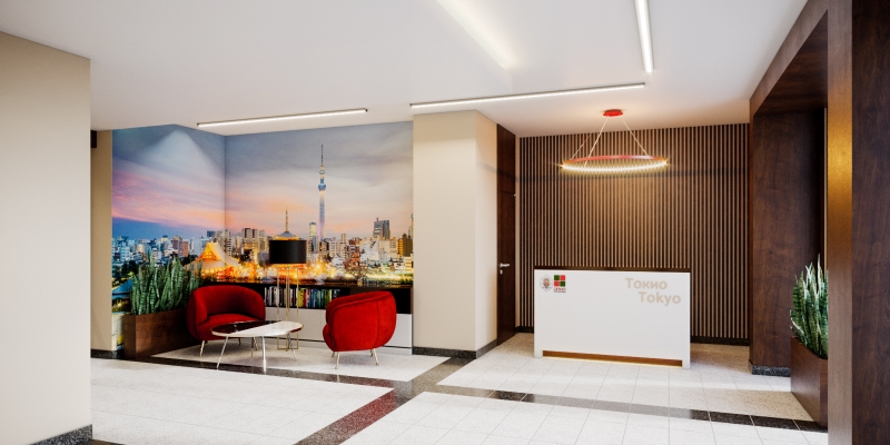 Конечно же, в доме будет и одна из основных «фишек» застройщика – дизайнерское лобби с местом для консьержа и санитарной комнатой. Атмосфера японского гостеприимства встретит ваших гостей буквально у входа в здание!