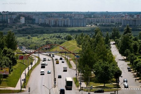 Могилев.Улица Королева.Спуск к мосту через Днепр с видом на микрорайон "Фатино".Фото Антона Скрипкина