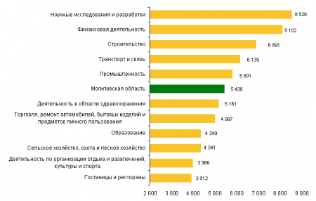 Начисленная среднемесячная заработная плата работников Могилевской области в ноябре 2014 года составила 5 338 тыс.руб., в том числе в г. Могилеве 6 025 тыс.руб..В других городах и районах эти цифры меньше. Самая маленькая зарплата начислена в Мстиславском районе – 4 138 тыс.руб.