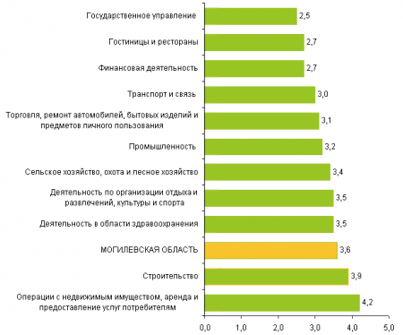 В мае 2015 г. минимальный уровень заработной платы по Могилевской области 10-ти процентов наиболее высокооплачиваемых работников в 3,6 раза превышал максимальный уровень заработной платы 10-ти процентов наименее оплачиваемых работников.