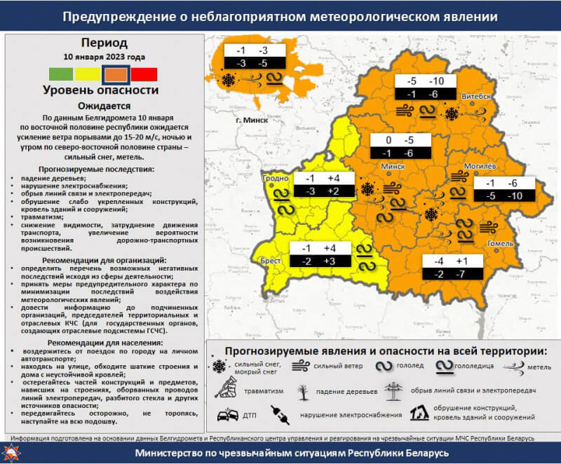 В Беларуси на 10 января объявили оранжевый уровень опасности