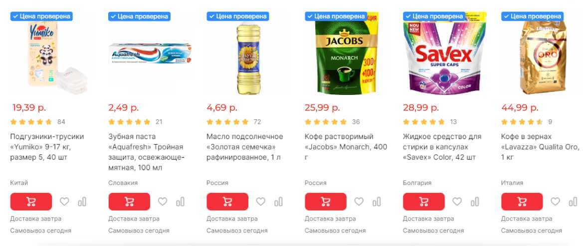Для удобства пользователей товары, которые в еженедельном мониторинге рыночных цен определяются как товары с минимальной ценой, обозначены специальным знаком «Цена проверена».