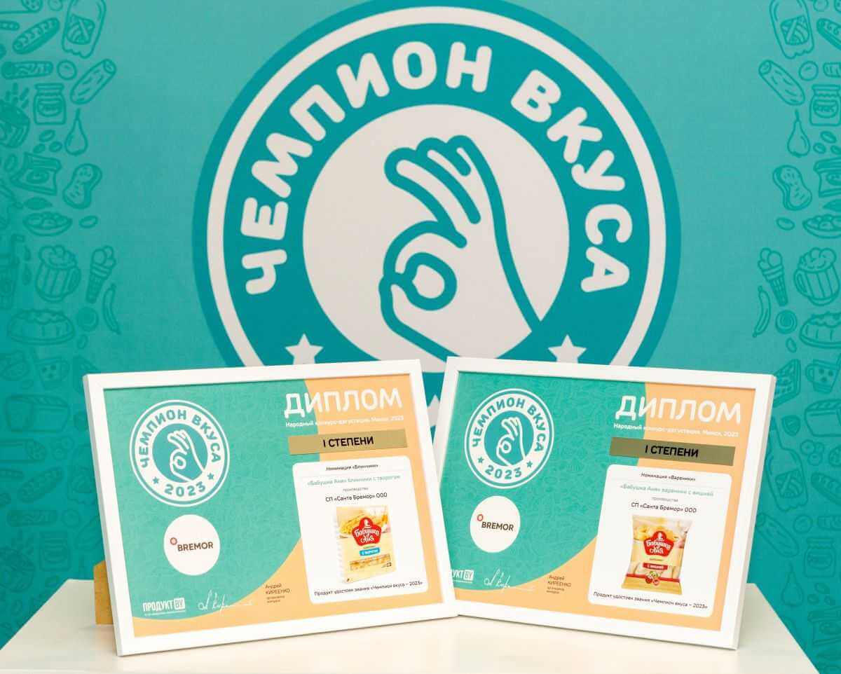 Самыми вкусными оказались блинчики «Бабушка Аня» с творогом. На дегустации потребители отмечали, что производителю удалось сделать блинчики, похожие на домашние, – «как у бабушки». В соседней номинации не было равных вареникам «Бабушка Аня» с вишней. Оба полуфабриката получили звание «Чемпион вкуса – 2023» и Диплом I степени. Награждение прошло во время международной специализированной выставки «Белагро-2023» в Минске.