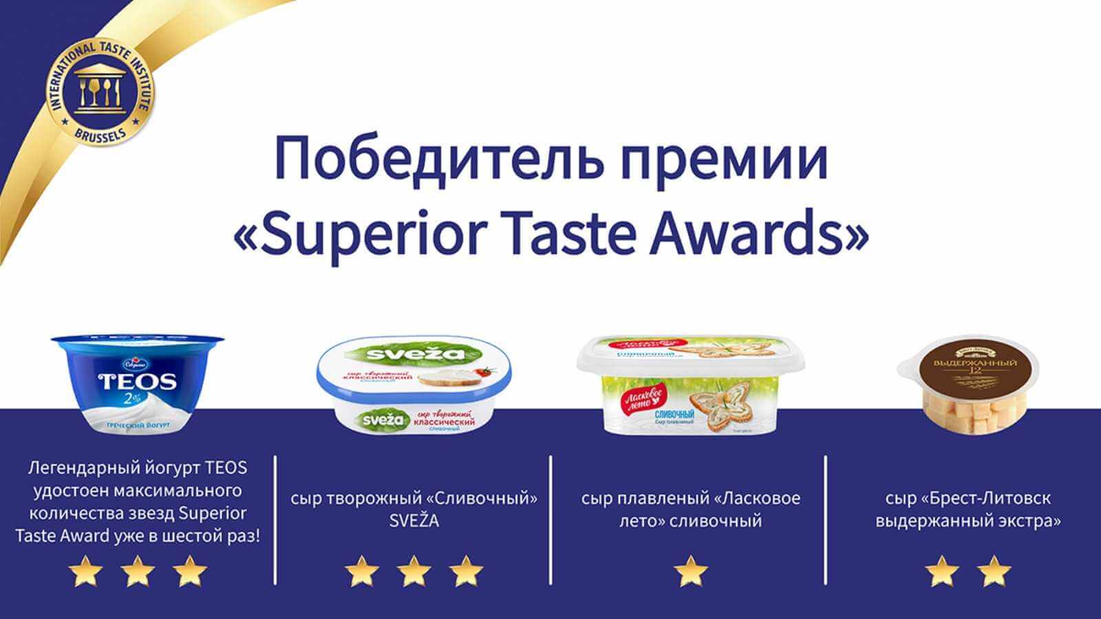 К слову, теперь на счету легендарного йогурта TEOS — уже 6 высших наград Премии Superior Taste Award и Хрустальный знак «За непревзойденный вкус и качество»: его вручают продуктам, получающим наивысшую оценку на протяжении трех лет подряд. Звезды присуждают по итогам оценки таких характеристик продукта как внешний вид, запах, вкус и текстура. Оценка проводится методом слепой дегустации: жюри не знает о продукте ничего, за исключением категории, в которой он представлен.