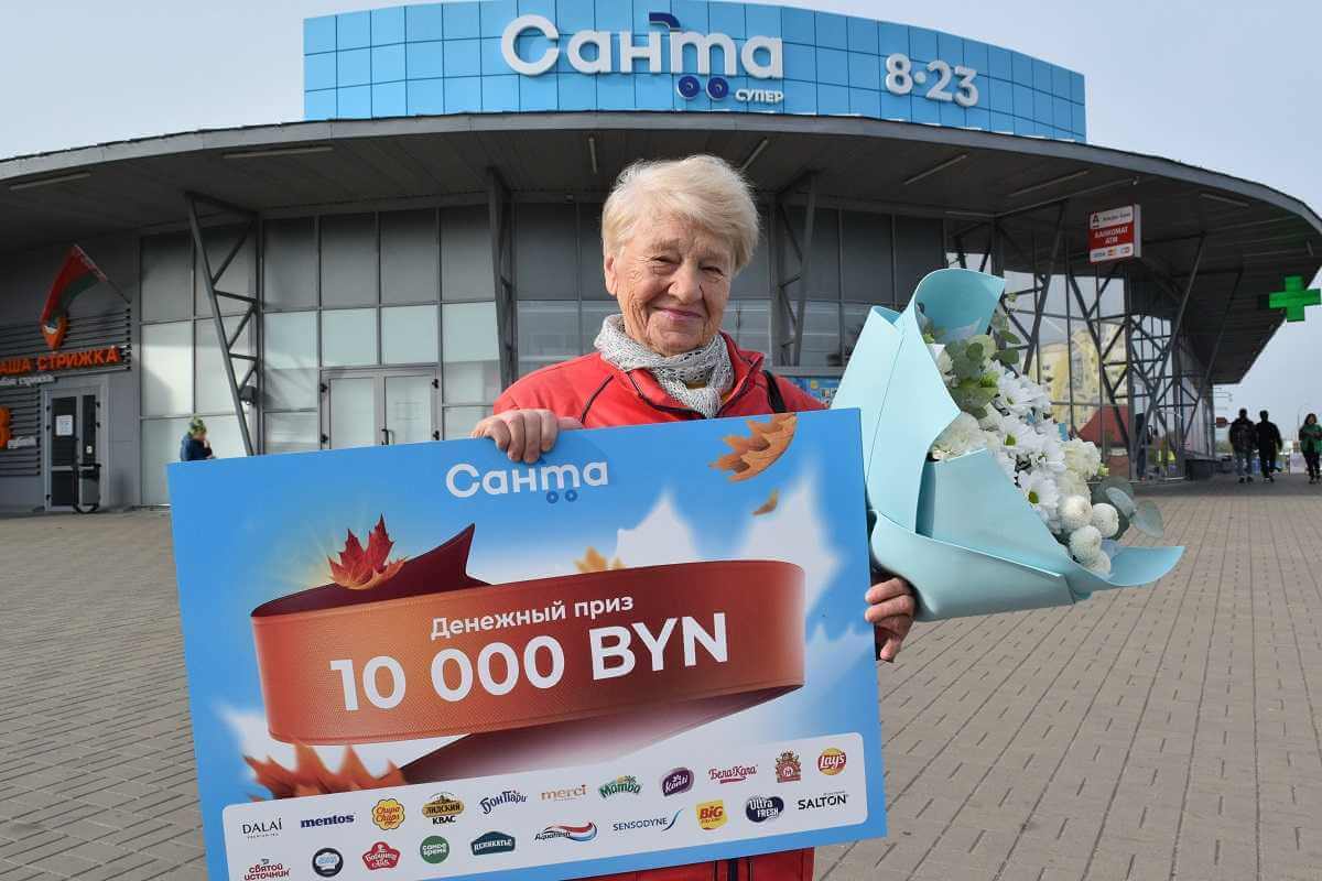Минский пенсионер Виктор Фильманович сходил в магазин и разбогател на 10 тыс. рублей. Мужчина выиграл суперприз в игре торговой сети «Санта». Столько же и брестчанка Елена Негрова, которая удачно заглянула в магазин за сальтисоном.