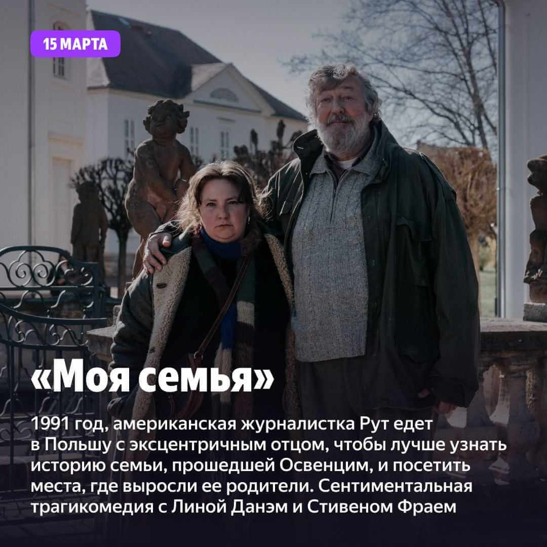 На домашние экраны вышла и «Моя семья» – сентиментальная трагикомедия с Линой Данэм и Стивеном Фраем. Американская журналистка Рут с эксцентричным отцом едет в начале 90-х в Польшу, чтобы понять семейную историю, связанную с Освенцимом.