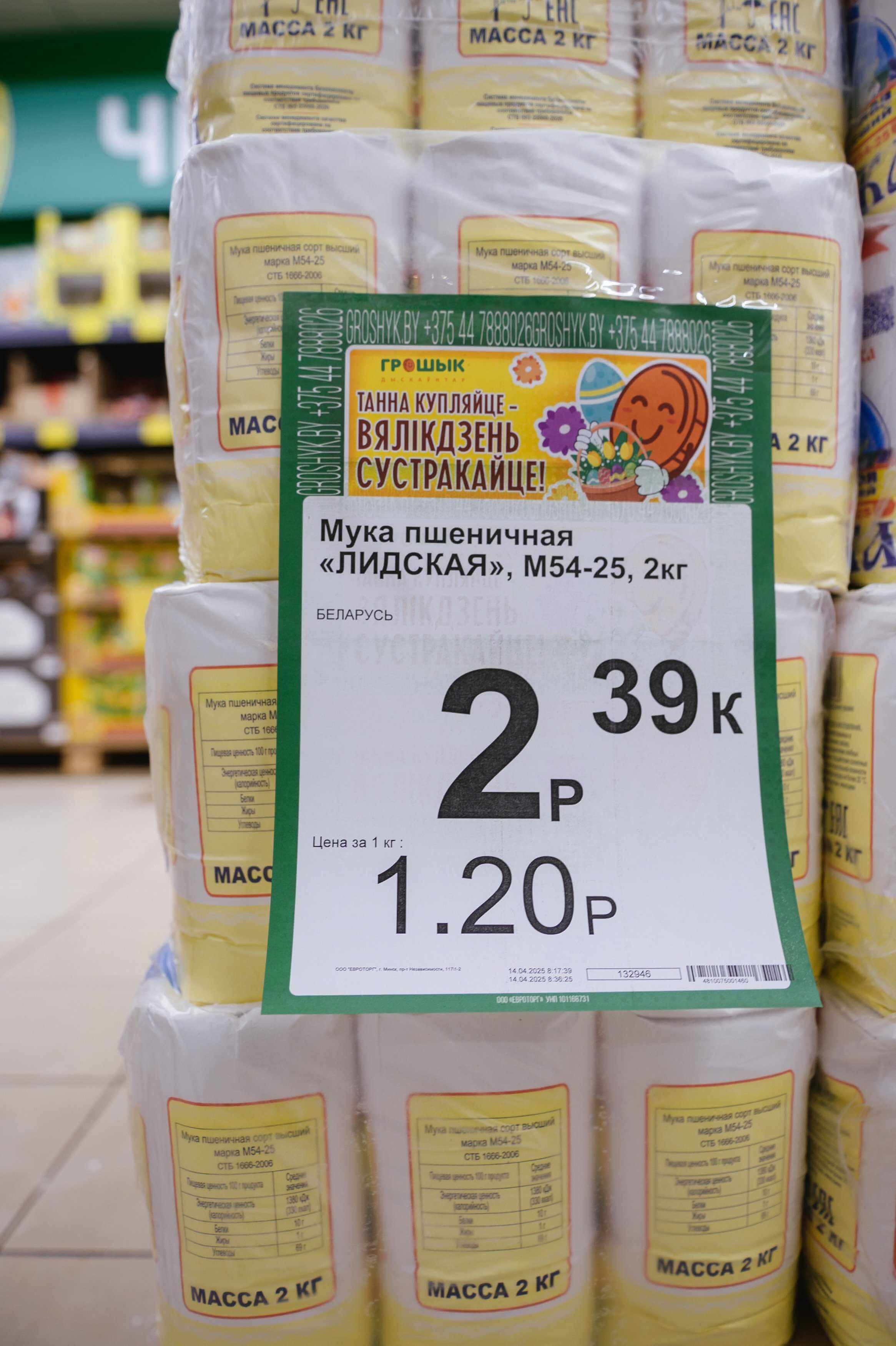 - Мука пшеничная «Лидская» высшего сорта, 2 кг – 2,39 руб. — незаменима для выпечки куличей.