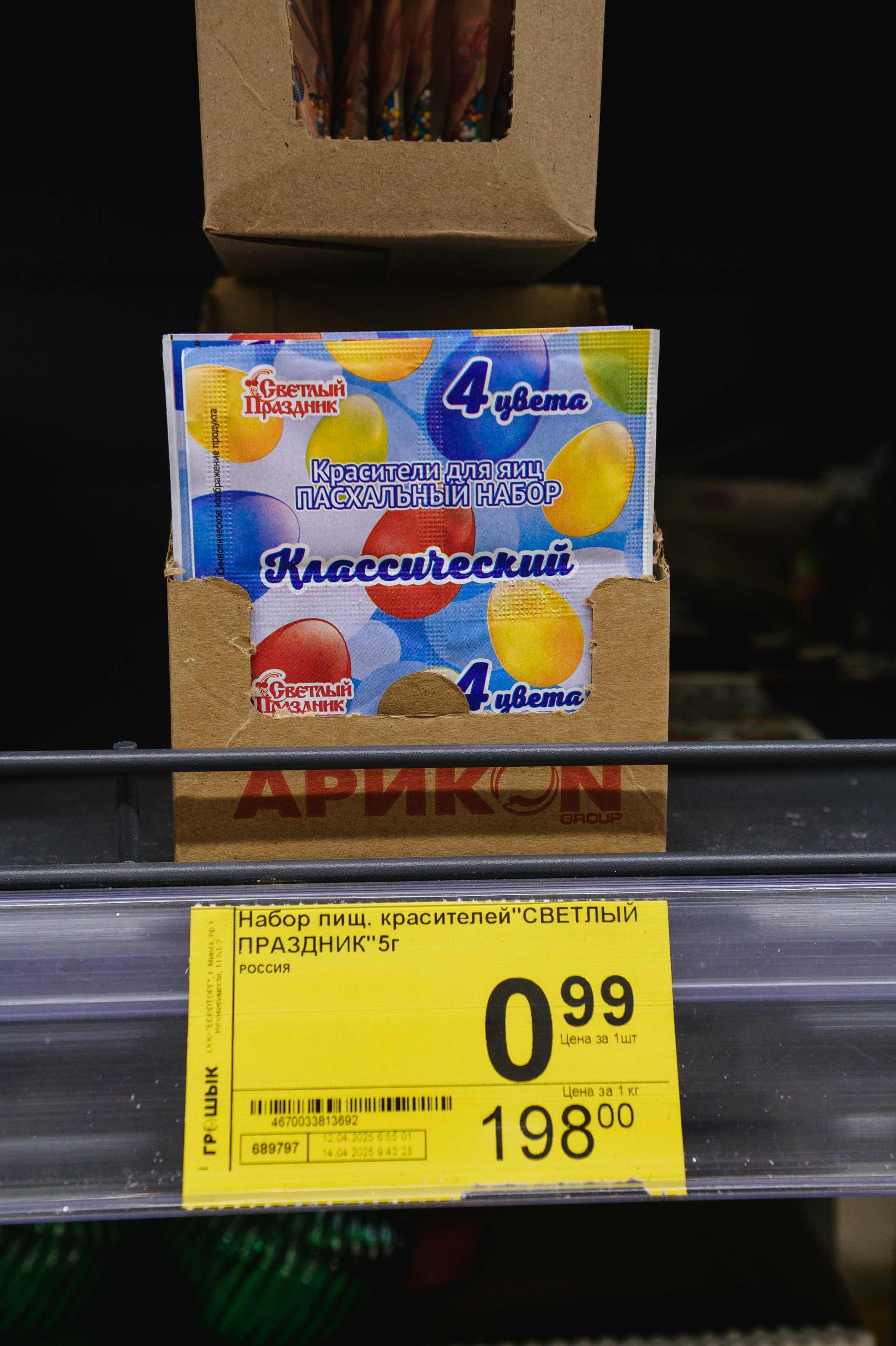 - Набор пищевых красителей «Светлый праздник», 5 г – 0,99 руб. — незаменимый атрибут праздника, который превращает обычную покраску яиц в семейную творческую традицию.
