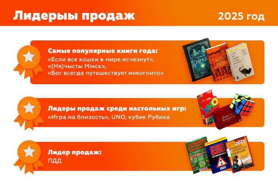 Если говорить о жанрах, то спрос распределился неравномерно. В OZ отмечают, что мистика и ужасы по итогам года прибавили 130%: эти книги все чаще выбирают, чтобы расслабиться и переключиться от повседневной рутины. В то же время психология и исторические романы показали снижение продаж на 15%: интерес к ним постепенно уступает место другим направлениям. Самые популярные книги года: «Если все кошки в мире исчезнут», «(Ня)чысты Мінск» «Бог всегда путешествует инкогнито».