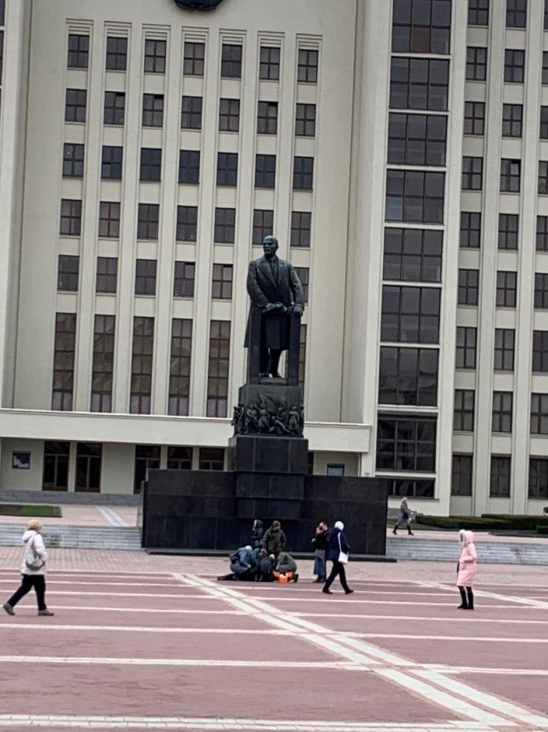 На площади Независимости, прямо напротив здания правительства, умер человек. Об этом сообщил телеграм-канал N со ссылкой на фото.