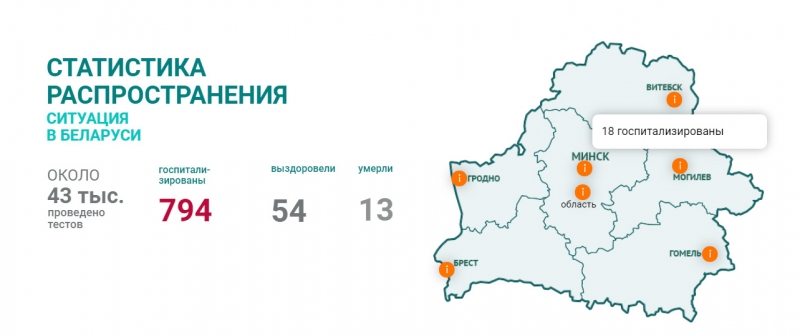 В Беларуси появился официальный сайт по мониторингу коронавируса в Беларуси. Он доступен по ссылке http://stopcovid.belta.by