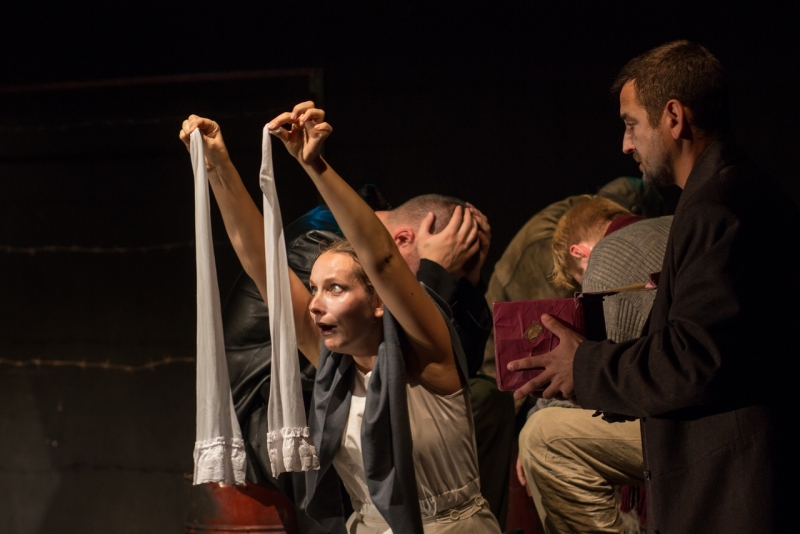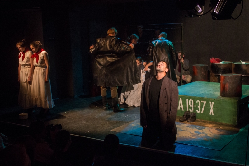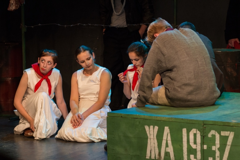 - Тот же Василь Быков написал: «В этой жизни все очень просто». Простая истина: люди не имеют права расстреливать других людей, отбирать у них жизнь. Совсем странно, когда свои стреляют в своих. Тридцать седьмой год точку в незаконных расстрелах не поставил… Принять этот факт я не могу…- И Вы поставили на Малой сцене Могилевского театра смелый спектакль с мощным гражданским посылом. Но ведь мудрая женщина Виктория Токарева сказала в интервью абсолютно верную вещь: «Бунтовать против системы – это как стоять со стульчиком и пытаться им наивно защититься от поезда, который несется на тебя…» И в вашем спектакле этот стук все время нарастает: сначала стук ложки о стакан, потом топот ног шести приговоренных…