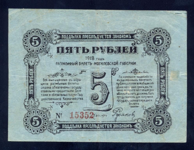 Интересно, что на псевдоденьгах Могилевской губернии значится, что «выпущенные в обращение разменные билеты сполна обеспечены государственными кредитными билетами и обязательствами Государственного казначейства». Только кассир Русаков, чья подпись значится на бонах, забыл указать, о Казначействе какого государства идет речь. Один разменный билет номиналом в три рубля выполнен на польском языке. Вероятно, поляки планировали остаться в Могилеве навсегда.