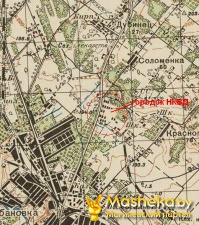 Если внимательно рассматривать топографическую карту Могилева, составленную в 1936 году по заданию генштаба РККА, то можно обнаружить на северо-восточной окраине города, по правую сторону Полыковичского шоссе, теперь это улица Крупской, странное скопление зданий. Причем это непросто обычные хаты, которых было полно по левую сторону шоссе, а довольно внушительных размеров строения.