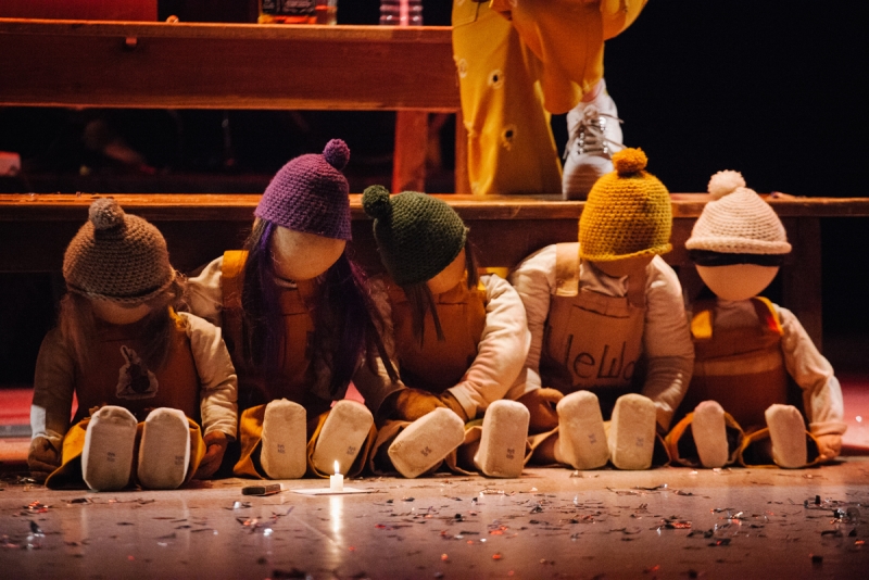 Артисты говорят и поют по-украински и по-английски, переходят от юмора к острым темам. Рассказывают о боли. Сколько слов о войне знают дети – куклы, маленькие двойники артистов, которые помогают им говорить о важном. Переходя от одной буквы алфавита к другой, они называют войну разными именами.