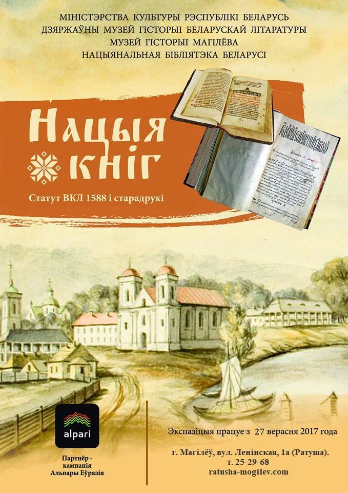Музей гісторыі Магілёва сумесна з Дзяржаўным музеем гісторыі беларускай літаратуры (г. Мінск) і Нацыянальнай бібліятэкай Беларусі запрашаюць 27 верасня 2017 года а 17-й гадзіне на адкрыццё літаратурна-мастацкай часовай экспазіцыі “Нацыя кніг. Статут 1588 і старадрукі”, прысвечанай важным падзеям ў культурным жыцці нашай краіны – 500-годдзю беларускага кнігадрукавання і 5-годдзю вяртання аднаго з асобнікаў знакамітага Статута ВКЛ.