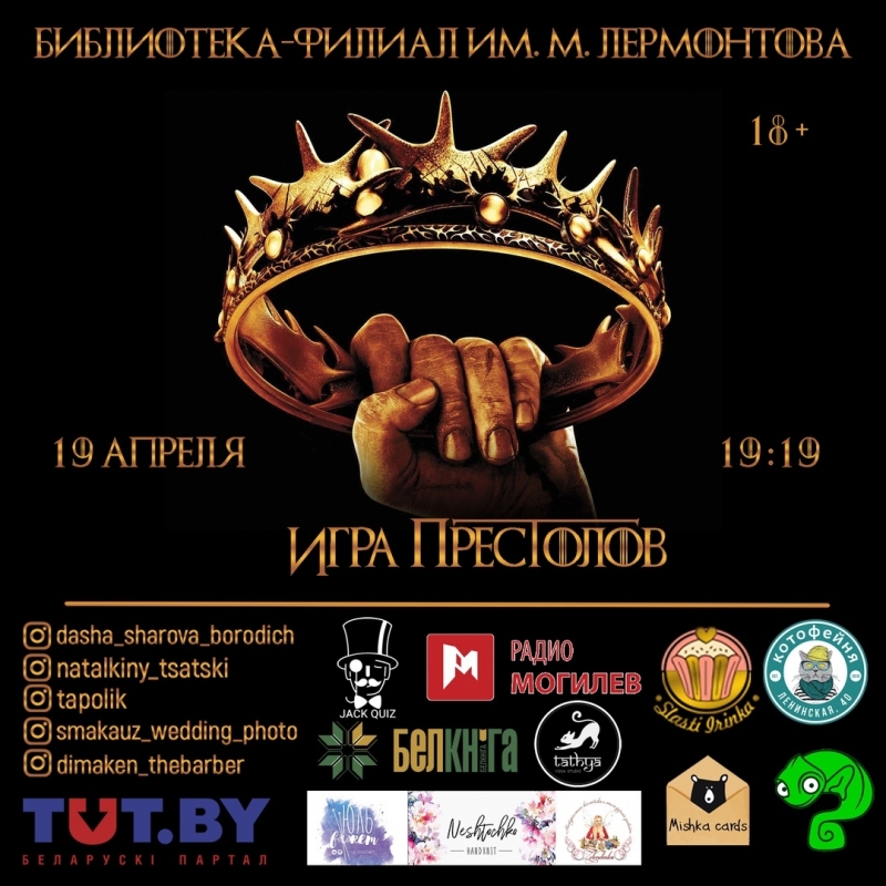 19 апреля приглашаем вас на молодежную тематическую вечеринку "Игра Престолов"
