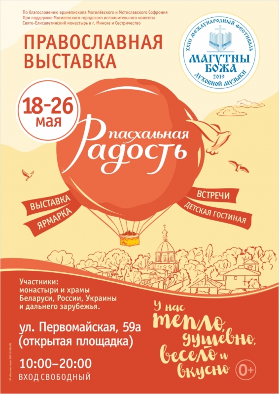 В рамках XXIII Международного фестиваля духовной музыки «Магутны Божа» в Могилёве с 18 по 26 мая пройдёт православная духовно-просветительская выставка «Радость», посвящённая 30-летию возрождения Могилёвской епархии. Об этом сообщили в Моггорисполкоме.