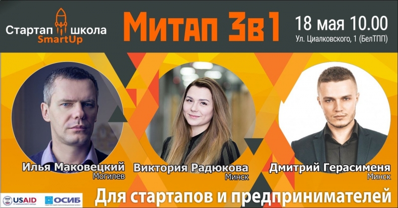 18 мая (суббота) Стартап-школа "SmartUp" | Могилев проведет Митап 3в1 для стартапов и предпринимателей, в ходе которого выступят 3 спикера из Могилева и Минска: