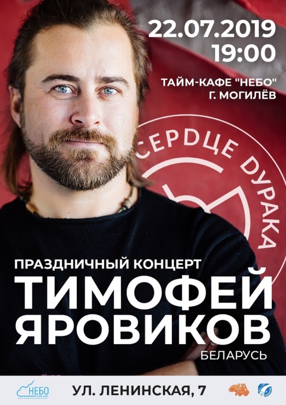 Могилёв!) Радостная новость: в этом году Тимофей Яровиков отмечает свой день рождения концертом в родном городе. Встретимся 22 июля послушать новых и старых песен и стихов и, конечно, поздравить Тимофея. Приглашайте друзей, знакомых, коллег! Празднику быть!))