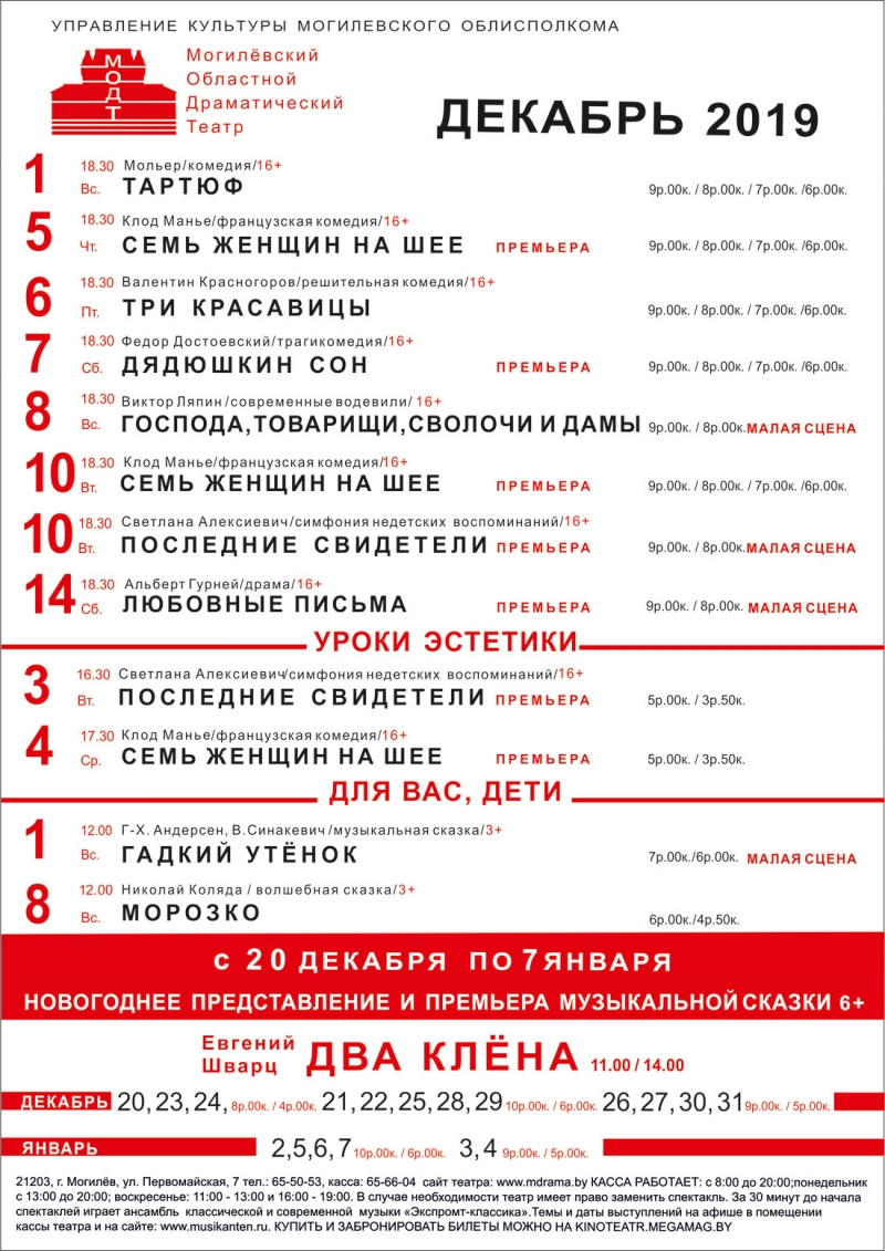 Программа Могилевского Драматического Театра на декабрь 2019. Обзор спектаклей