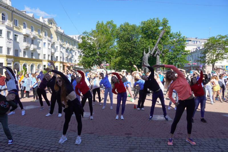 В Могилеве на площади Звезд сегодня провели «Народную зарядку». Она стала частью мероприятий, организованных в городе в рамках Недели молодежи и студенчества. 23 июня проходит в областном центре под девизом «Молодежь за спорт», поэтому такое активное начало дня было очень символичным.