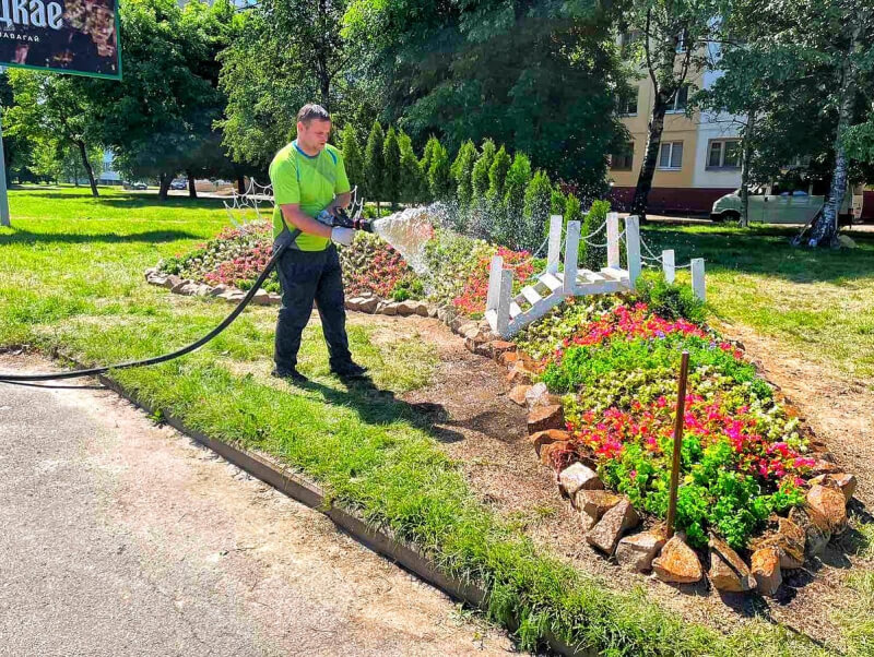Новая цветочная клумба с зонтиком и деревянным мостиком появилась в Могилеве
