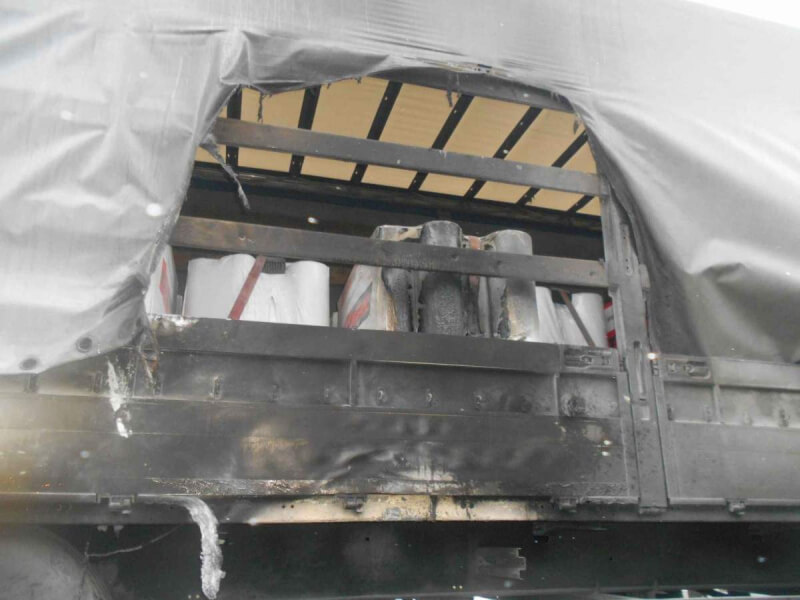 Загорание колеса водитель грузовика обнаружил, остановившись на трассе. Пламя начало распространяться на тент. До прибытия спасателей, мужчина применил порошковые огнетушители, чтобы спасти авто. А затем при помощи подручных средств скинул колесо на обочину.