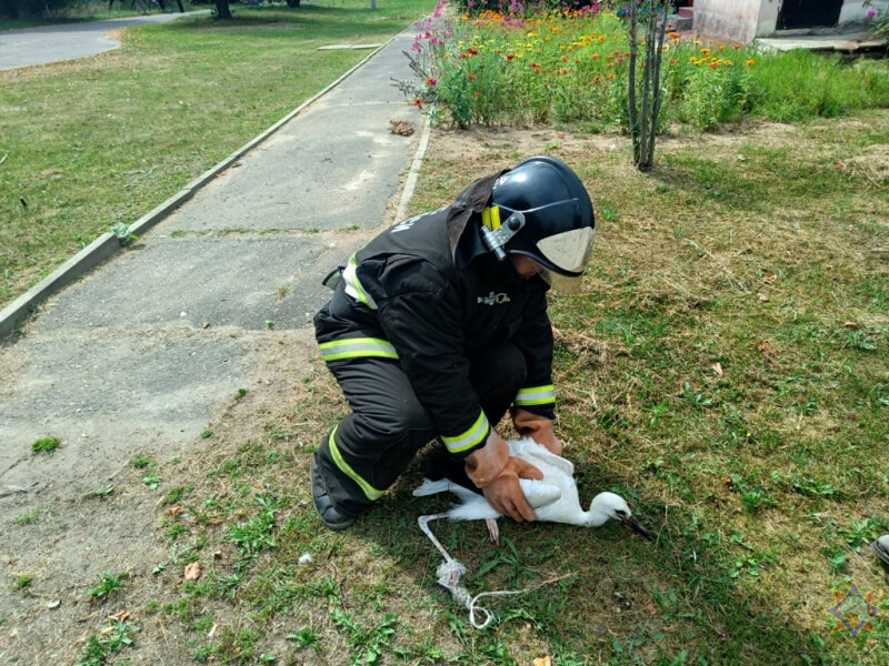 Спасатели Климовичского района спасли аиста, застрявшего на столбе