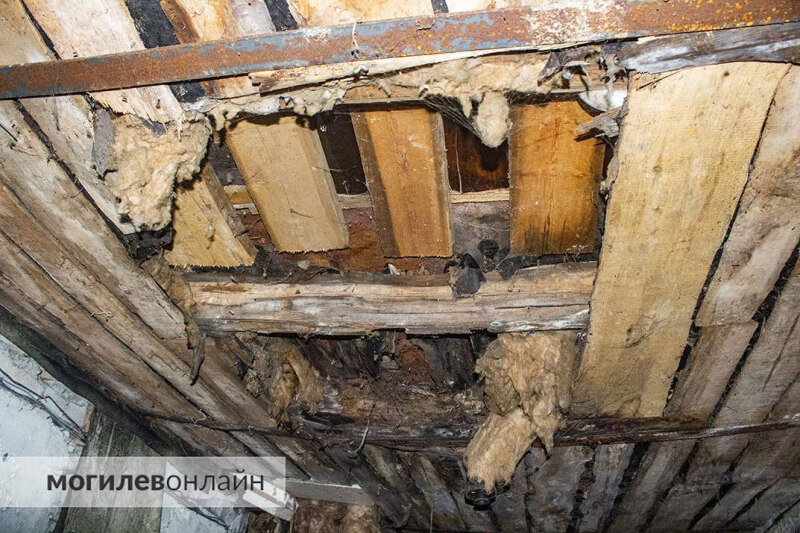 Всё было бы не так печально, если бы эта проблема дома оказалась самой страшной. Дело в том, что канализация там течёт постоянно. Из-за постоянной сырости в здании прогнили перекрытия. Сейчас жители первого этажа просто рискуют провалиться в подвал.