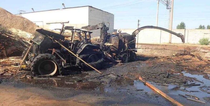 Над заводской территорией появился черный столб дыма, который был заметен за несколько километров. Оказалось, что там загорелся трактор и рубительная машина. Работники сами попробовали потушить технику огнетушителями, однако всё равно пришлось вызывать спасателей.