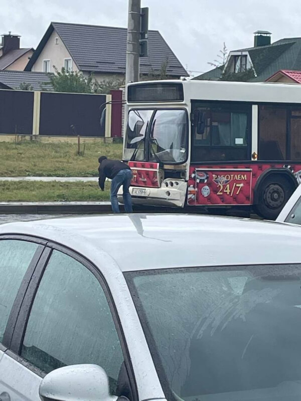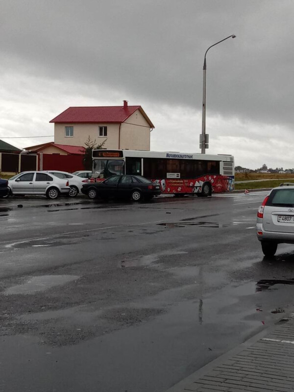В Могилеве столкнулись легковой автомобиль и пассажирский автобус № 4. Фото с места ДТП опубликовал паблик «ДТП и ЧП Могилев».
