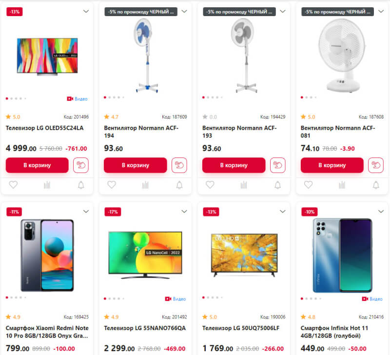 Мы посмотрели сайты магазинов и предлагаем ознакомиться с некоторыми товарами, которые идут по скидке.