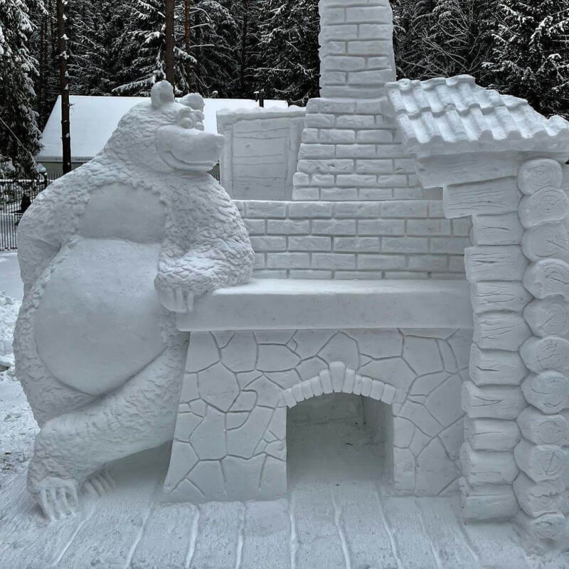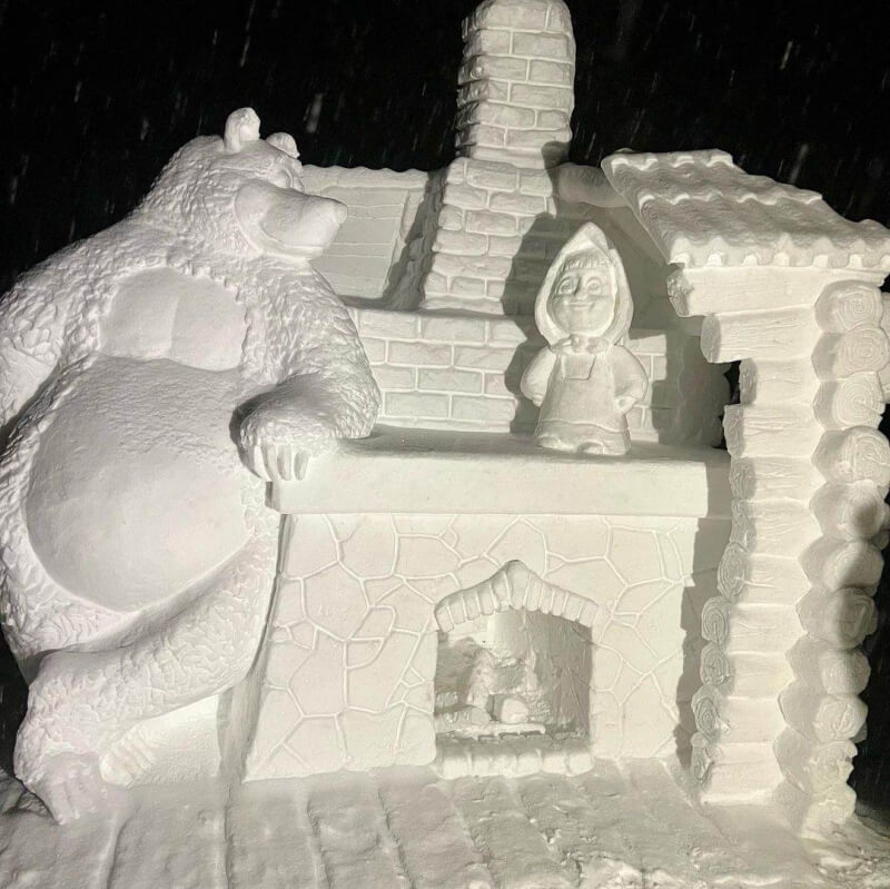 В Могилеве мужчина слепил из снега сцену из мультфильма «Маша и медведь»