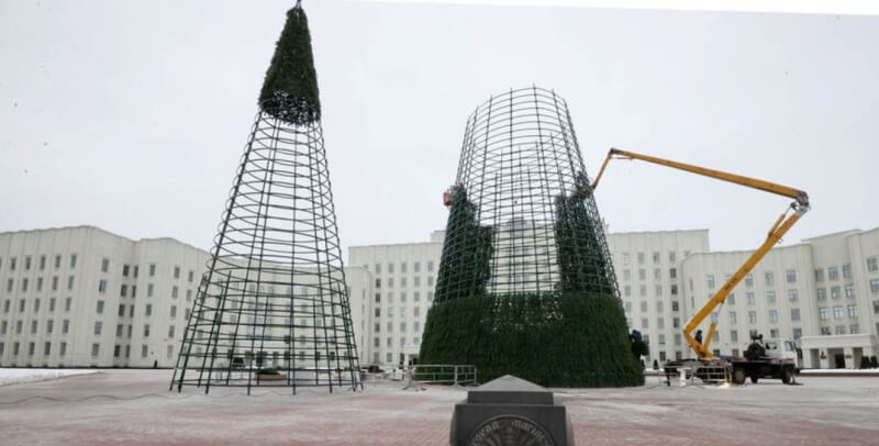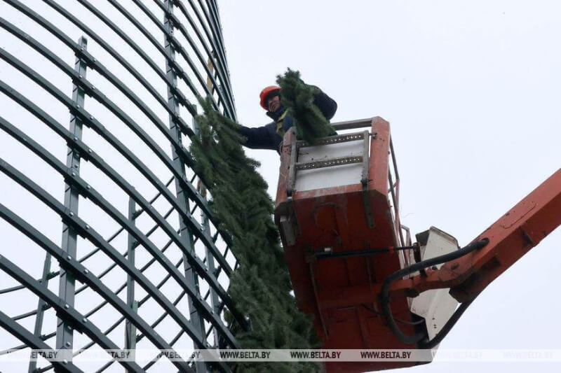 В Могилеве продолжают монтировать главную елку области — самую высокую в Беларуси