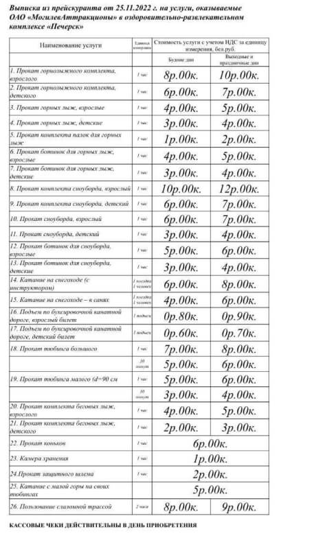 Прокат малого тюбинга 1 час. — 5 руб. (Пн. — Пт.), 6 руб. (Сб., Вск.)