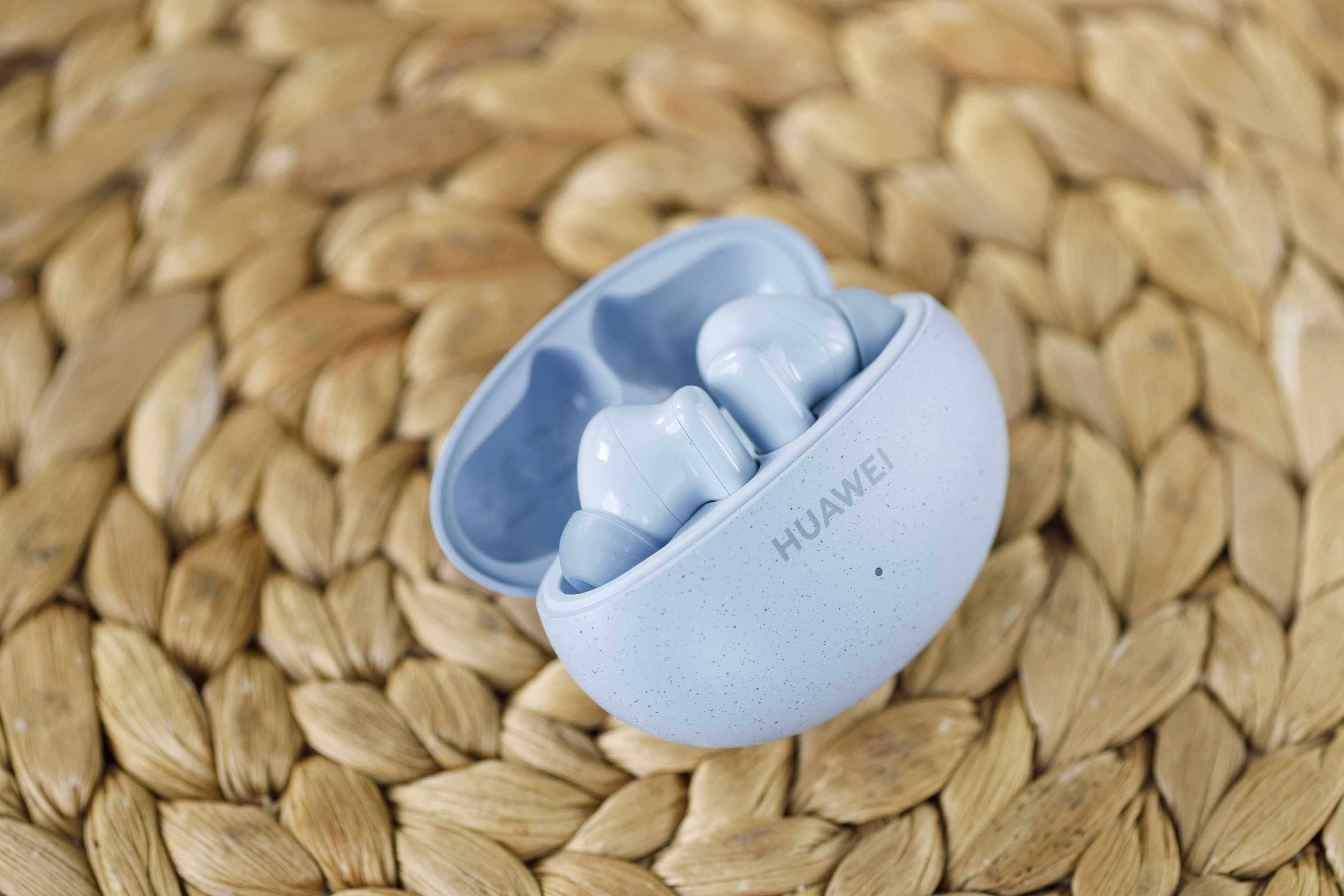 Huawei FreeBuds 5i доступны в трёх цветах: «керамический белый», «серо-голубой» и «черный гранит». Кейсы для последних двух имеют матовое покрытие корпуса с мелкими вкраплениями другого цвета, что напоминает морскую гальку.