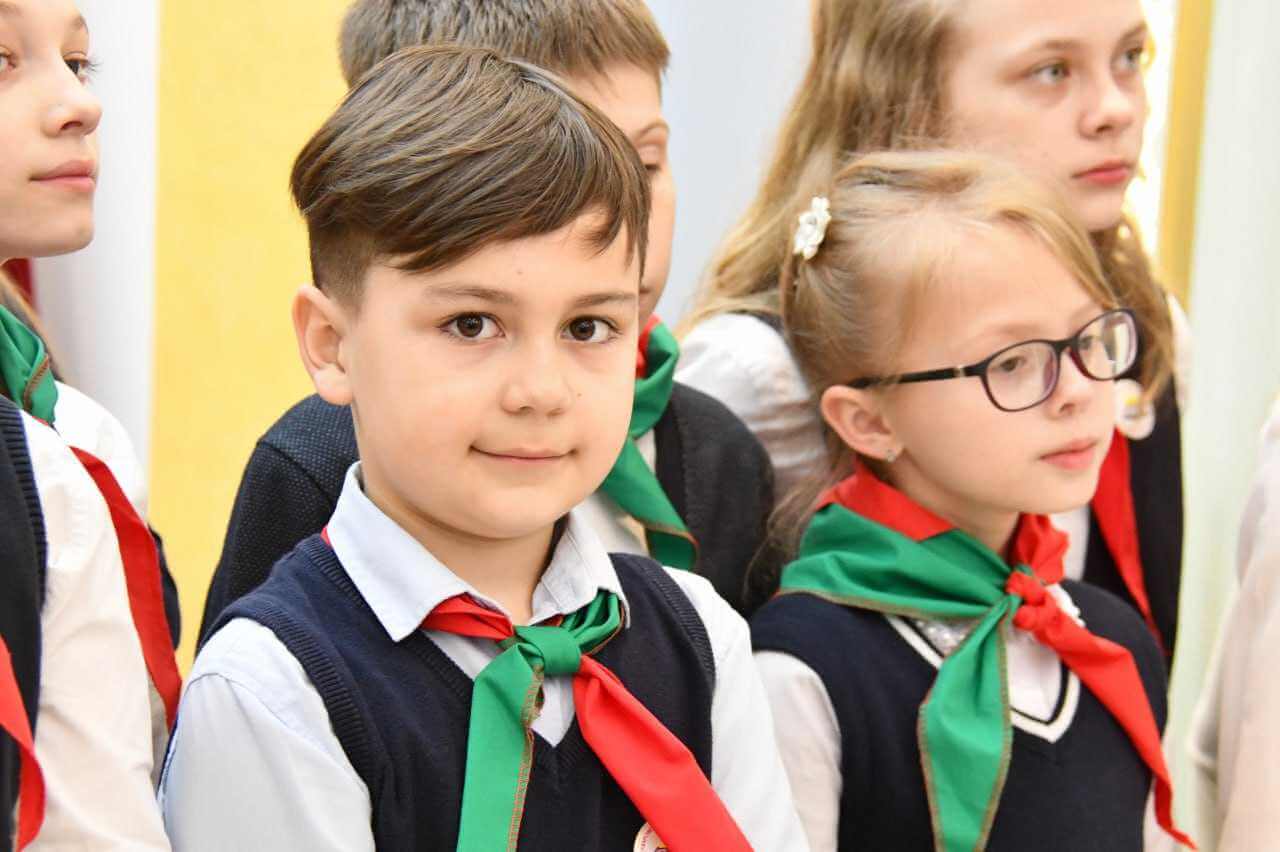 Здесь впервые состоялся необычный торжественный ритуал – школьников приняли в ряды Белорусской республиканской пионерской организации. После напутственной речи им повязали зелено-красные галстуки. В ритуале принял участие Евгений Коваленок и представитель пионерской организации при гимназии.