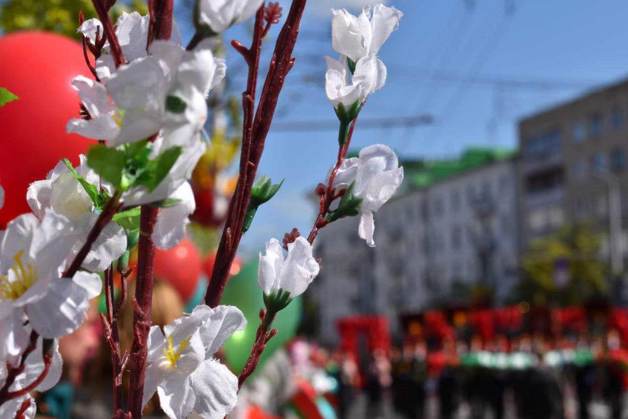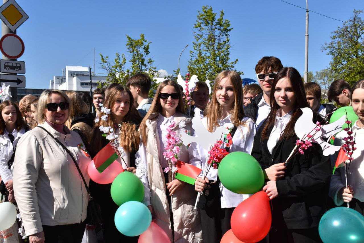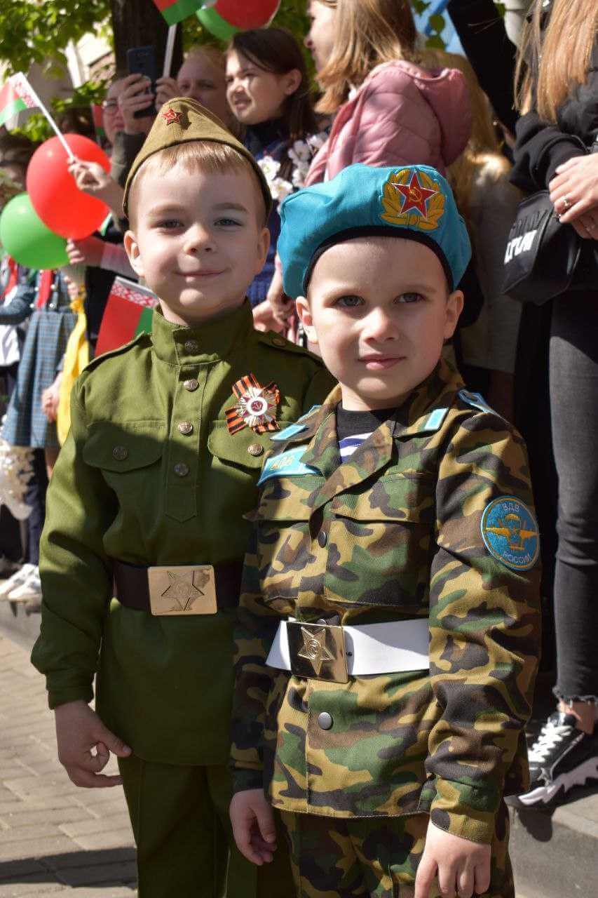 9 мая на главной улице Могилева собралось огромное количество людей. Живой коридор пестрит ветвями яблоневого дерева, республиканскими флагами и портретами героев!