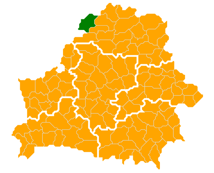 Желтый цвет обозначает, что посещение ограничено: находиться гражданам в лесах можно, но на транспорте въезжать запрещено, кроме спецтранспорта, также запрещено проводить работы, не связанные с ведением лесного хозяйства. В зеленой зоне только один район страны — Браславский.